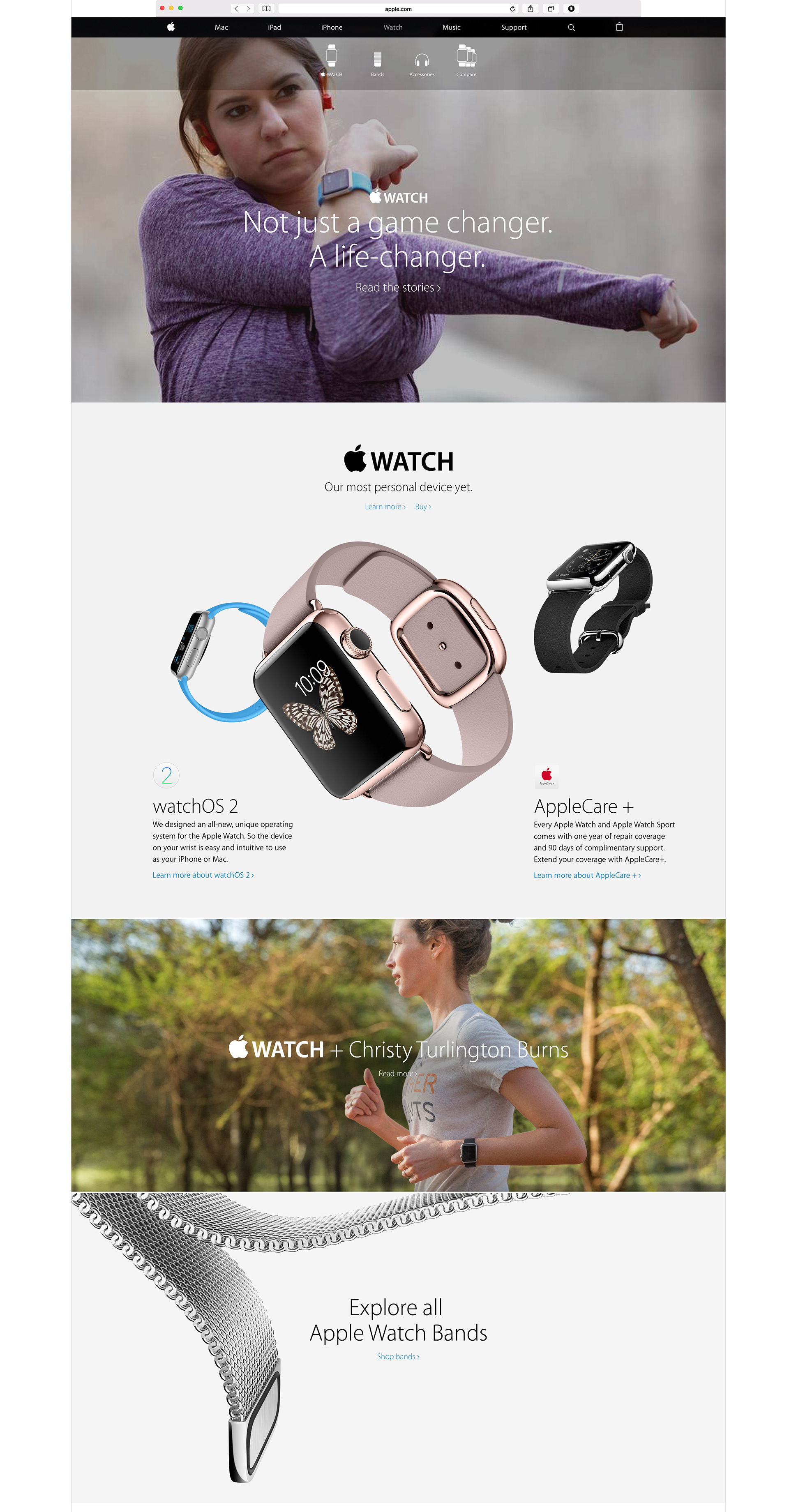 We wanted to provide a destination to inspire consumers using the Apple Watch. The stories ranged from influencer social posts to articles.