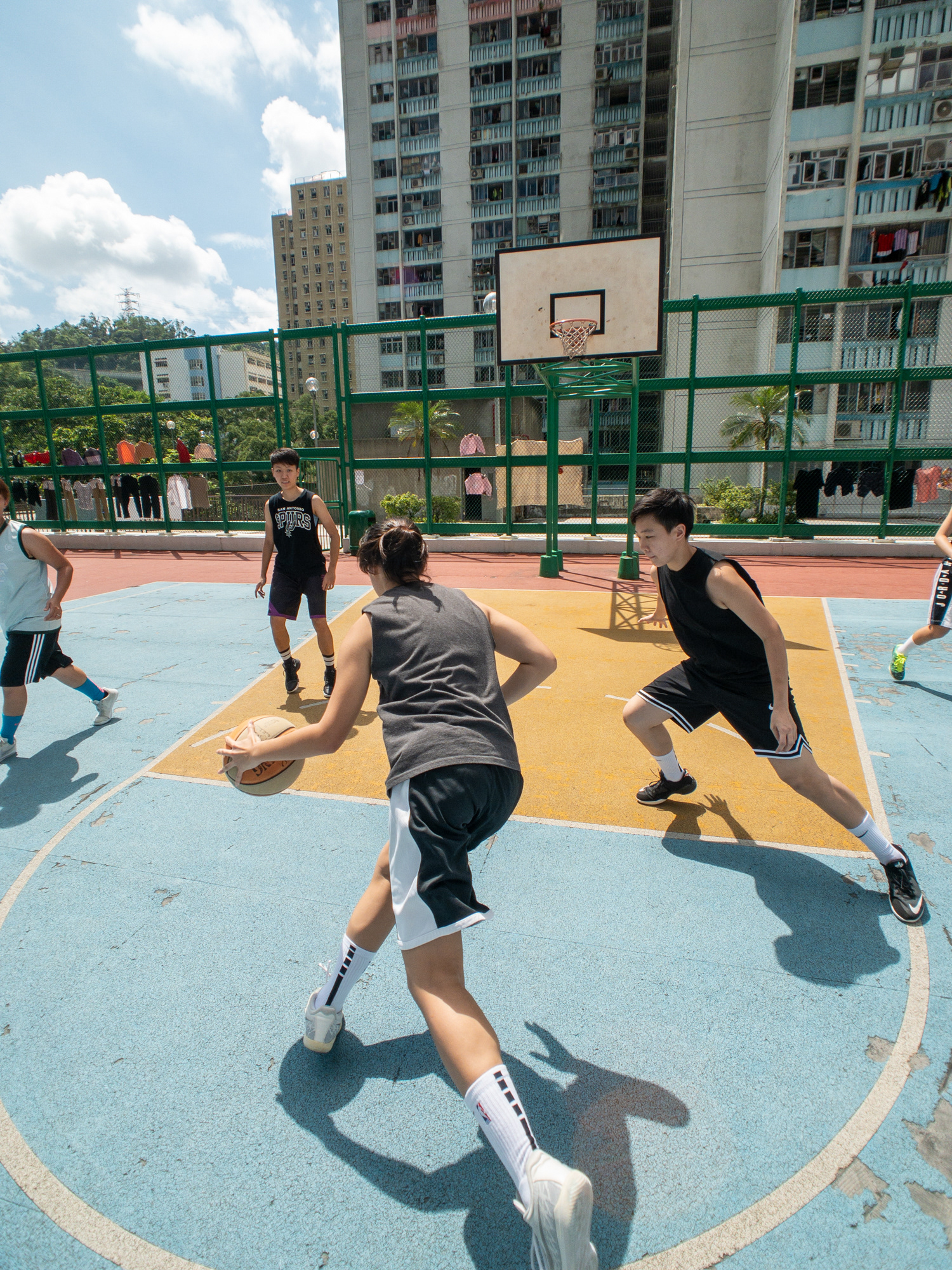 In Hong Kong, basketball is literally at the center of every community. By law, residential areas are developed with basketball courts. All ages come out to play and will form teams from women to seniors.