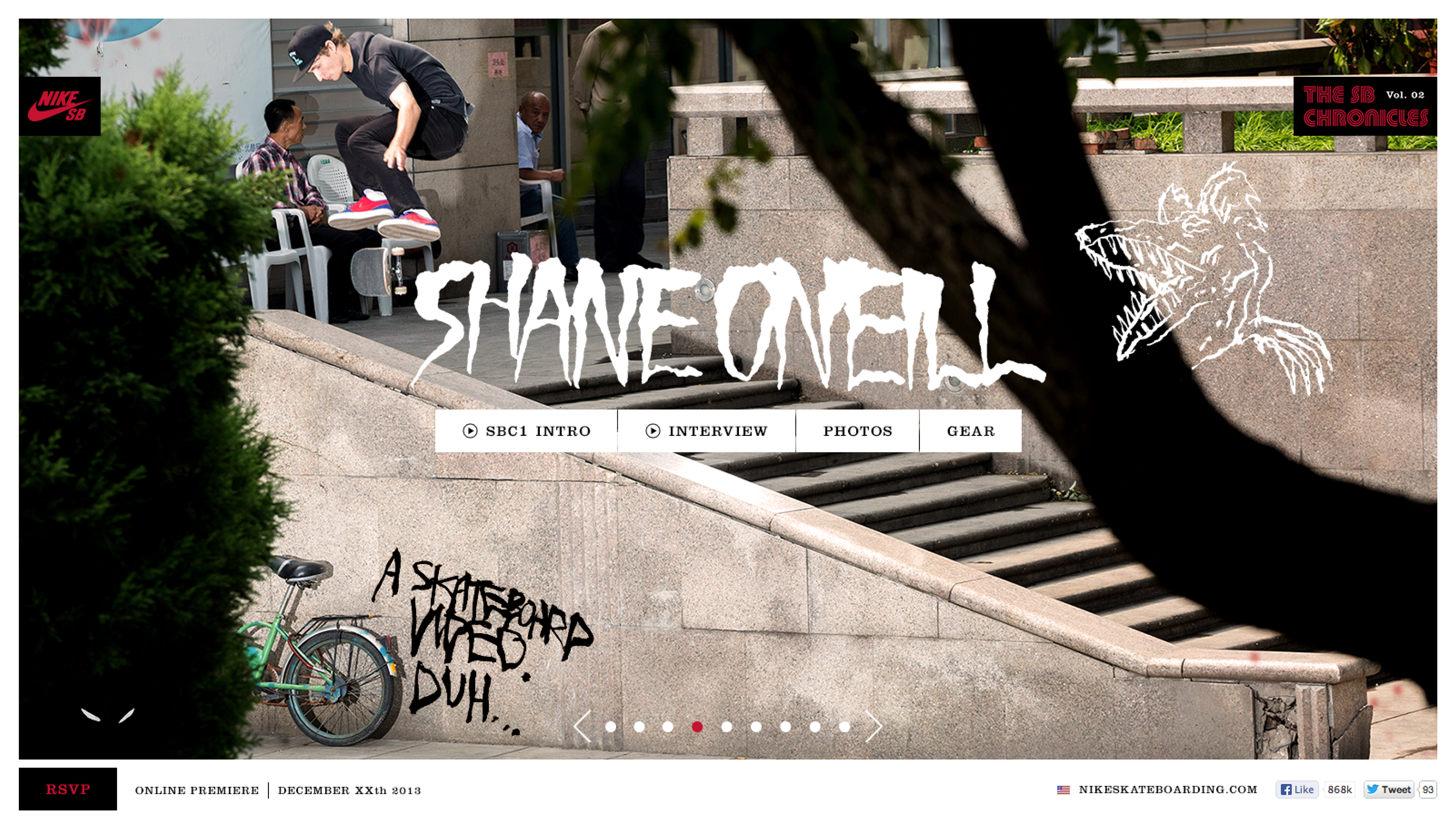 The second installment in the ongoing “Chronicles” series, SB Chronicles, Vol. 2. From San Jose to São Paulo and beyond, Nike SB is in the streets at top-secret spots around the world for new full-length video parts from team riders Luan Oliveira, Donovon Piscopo, Shane O’Neill, Daryl Angel, Theotis Beasley, Justin Brock and Ishod Wair. Released a companion SB Chronicles editorial site featuring weekly content drops, trailers, film photography and quikestrike products. World premiere was released through the Nike SB app for free before released on iTunes.